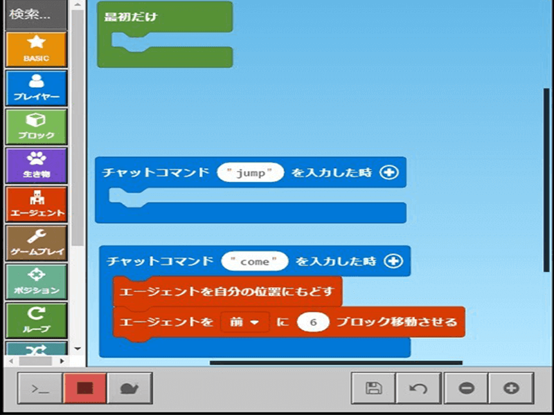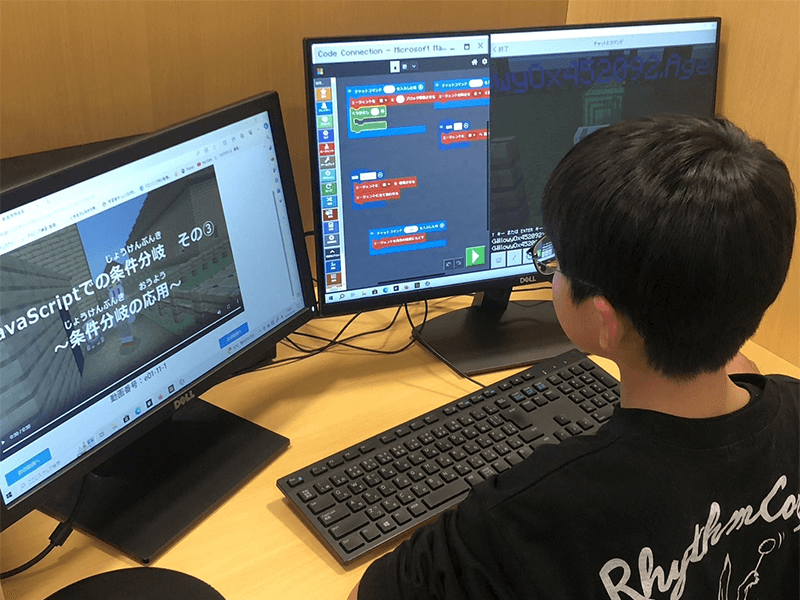 説明動画を見ながらマイクラとメイクコードを操作し、プログラミングを学びます。